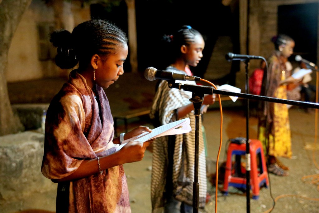 Le poète Anssoufouddine Mohamed lors d’une lecture publique du club Soirhani