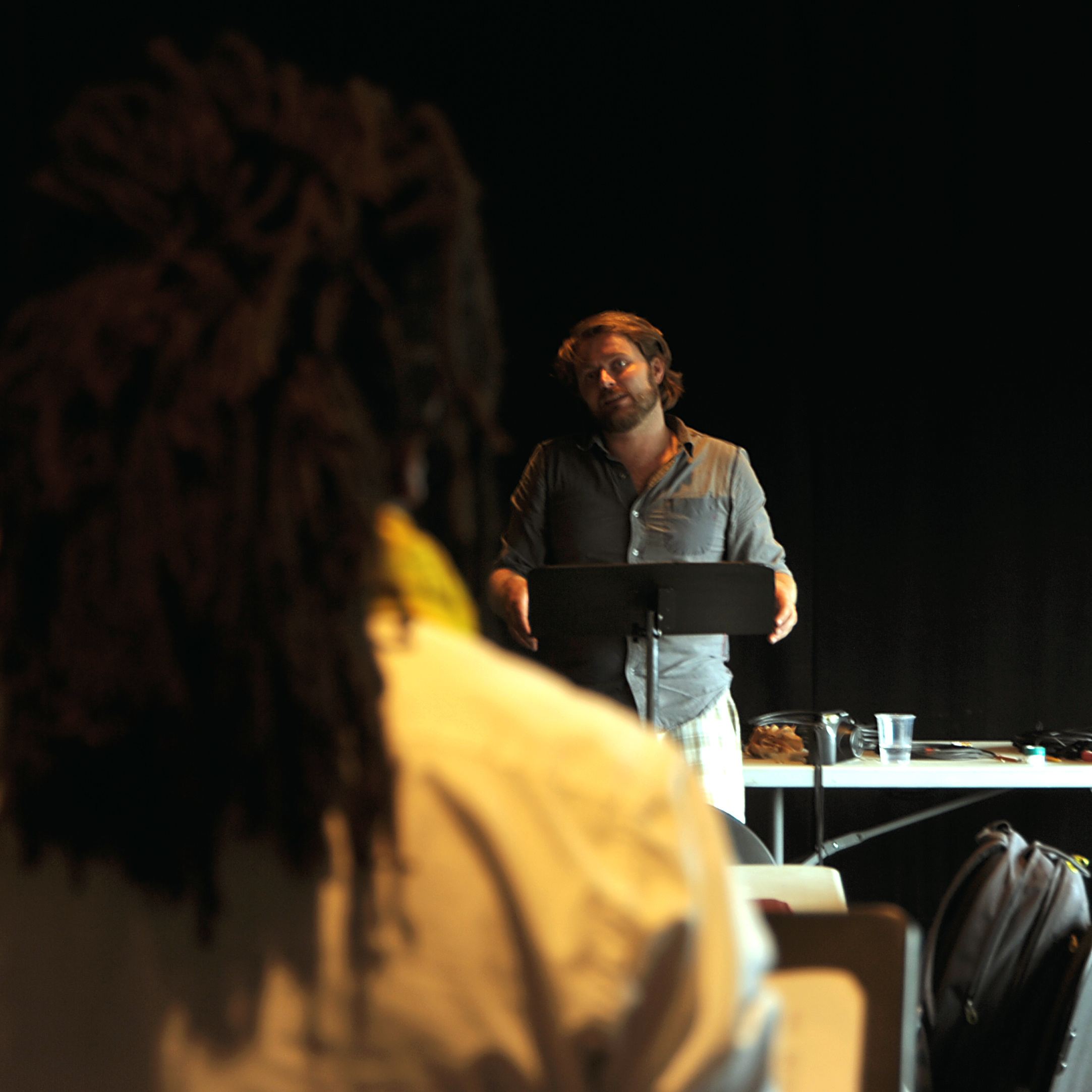 À L’ISSUE DE LA REPETITION. « Denis Laujol, en tant que regard extérieur, souligne que l’exercice n’est pas sans risques. Il existe un réel danger à s’engluer dans l’animosité, à être débordé par les interrogations et les réactions du public. L’équipe doit faire un choix dans le déroulement de la chambre, laisser plus d’espace à l’interaction avec les spectateurs ou les orienter sur le texte. Il est alors nécessaire pour l’équipe de trouver des astuces afin de laisser libre cours à l’envie d’expression du spectateur sans sortir du déroulement de la chambre. »
