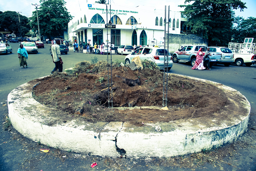 C’était en novembre 2014. Soeuf Elbadawi voulut ériger une stèle sur la Place de France à Moroni, en hommage aux victimes du Visa, avec l’autorisation de la mairie. La gendarmerie nationale, sous la direction du lieutenant-colonel Rafick Abdallah, vint interrompre les travaux sur la place, prétextant des mesures de sécurité routière, pendant que Djouhoud, préfet du Centre et premier flic de la ville, avança des raisons de sécurité nationale pour clore le dossier. L’artiste essaya d’expliquer son geste dans les médias. La nécessité d’honorer la mémoire et le deuil des victimes n’interpella pas grand monde aux Comores. Même le ministère de l’intérieur, qui, sous les ordres de Ousseine Hassan, encouragea à réaliser son projet, à l’époque, se tut.