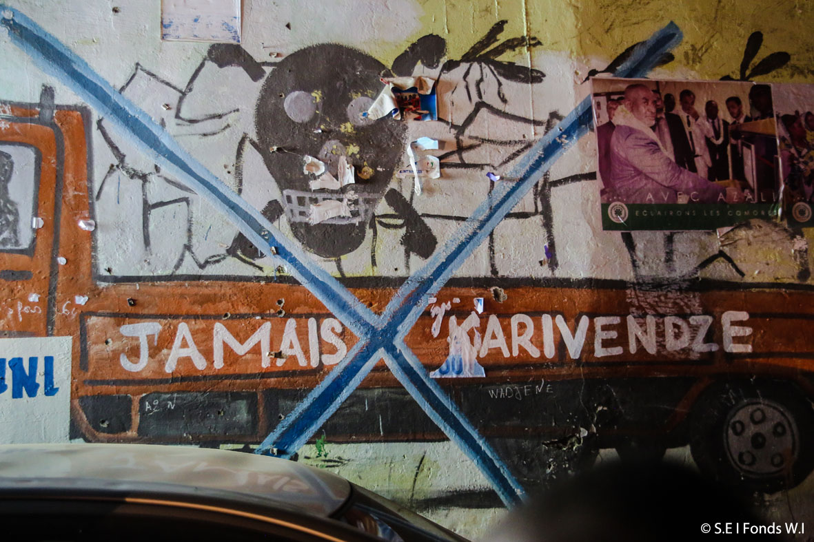Message de sensibilisation sur un mur à Mamoudzou en shiMaore.