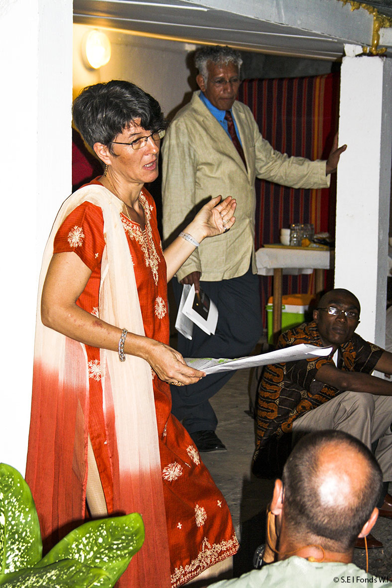 Isabelle Mohamed à la Bouquinerie de Passamainty, lors de l’opération Esprit de lune en mouvement, rassemblant des auteurs comoriens.