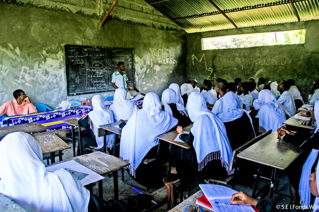 L’image en Une du texte figure une lecture dans la cour de l’école Soirhane à Mirontsy.