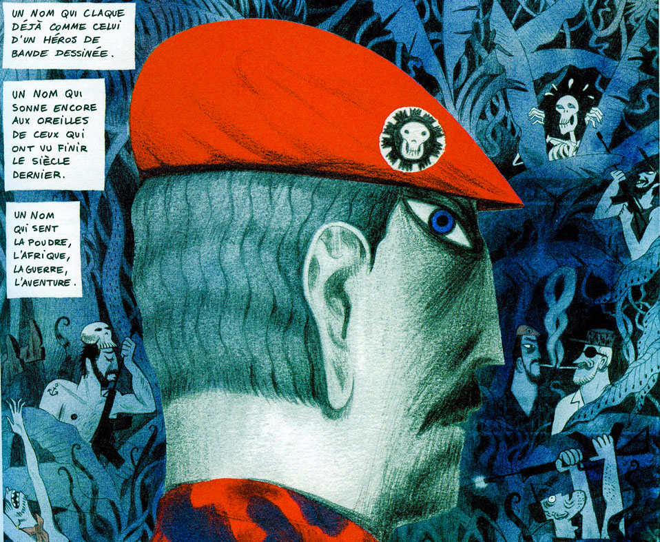 Autant se l’avouer ! Tous ceux qui ont subi les foudres du Denard en Afrique ne peuvent qu’être scandalisés par les angles morts de cette BD, prétendument documentée. Avoir un cousin trépassé sous les balles du mercenaire ou appartenir à un Etat qui se plie à son bon vouloir vous change de perspective. Le propre de ces récits tronqués est qu’ils vous dépossèdent de votre mémoire, en plus de travestir votre souffrance. « On fait de la pacification, pas de l’extermination. On est une unité de soldats, pas une boucherie-charcuterie », s’exclame un Denard habité, qui précise, aussitôt : « évidemment, on n’est pas des danseuses (…) Si les gars d’en face comprennent pas, on les carbonise ». Le narrateur (La mort ? Son double possible dans les abysses de l’histoire ?) admet que de « nombreuses années de pillage, d’exploitation et de domination infantilisante des nations colonisées » ont pu se finir en désastre (« une cocotte minute »), mais trouve quand même le moyen d’en rire : « pour notre cher Bob, c’est tout benef, comme on dit ». On est loin du portrait acide et sans concession. On est limite dans le besoin de transformer un personnage sulfureux en objet de fascination. On appréciera le dessin de Coignet, dont les couleurs chatoyantes rendent tout l’exotisme d’une telle approche. « Ah, ce bon regard condescendant des Occidentaux sur le reste de la planète », parvient-on à lire, sans rire, entre deux planches.