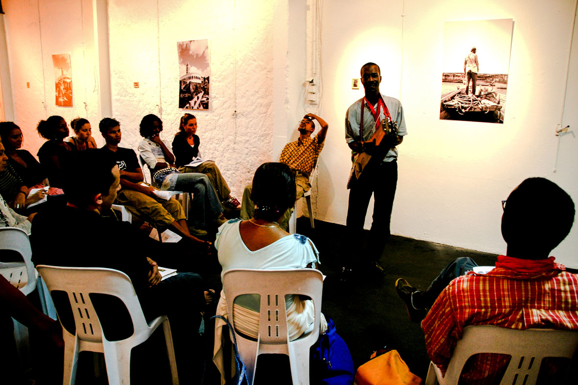 Moroni exposé sur les murs de la ville du Port, rencontre avec les étudiants de l’école des Beaux-Arts à la Réunion, conversation avec un coq noir sur un îlot de sable.