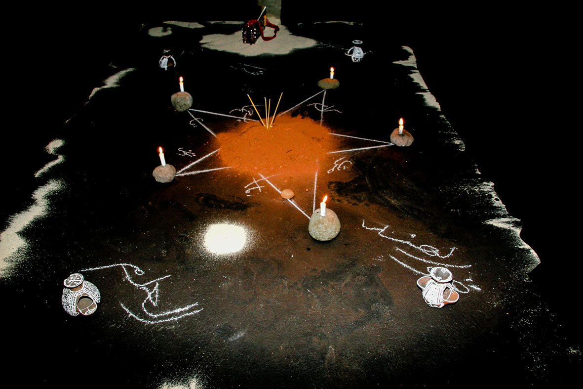 Performances, notamment avec Mwinyi Mmadi au ndzendze, Moroni en images sur les murs, inscriptions rituelles au sol. Une réflexion en mouvement sur un destin d’archipel ou l’obsession du récit.