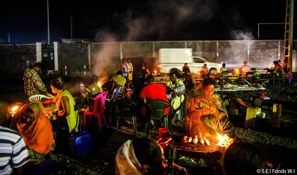L’image en Une de l’article : la gare routière des Sud, la nuit, à l’heure des brochetteries.
