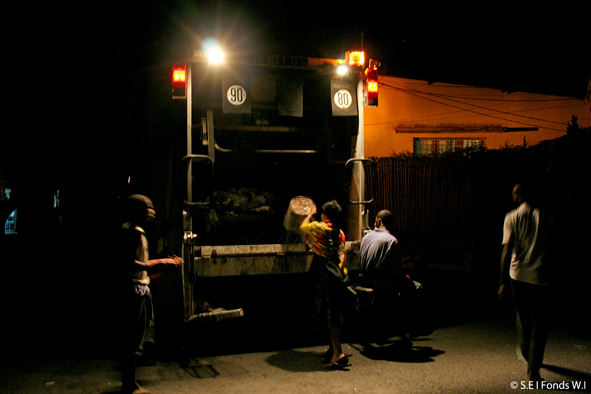 La grande rue menant vers Volo Volo en plein mois d’effervescence commerciale. Le ramassage des ordures à Sanfili par la mairie. Lentement, la cité enfle, mais s’organise…