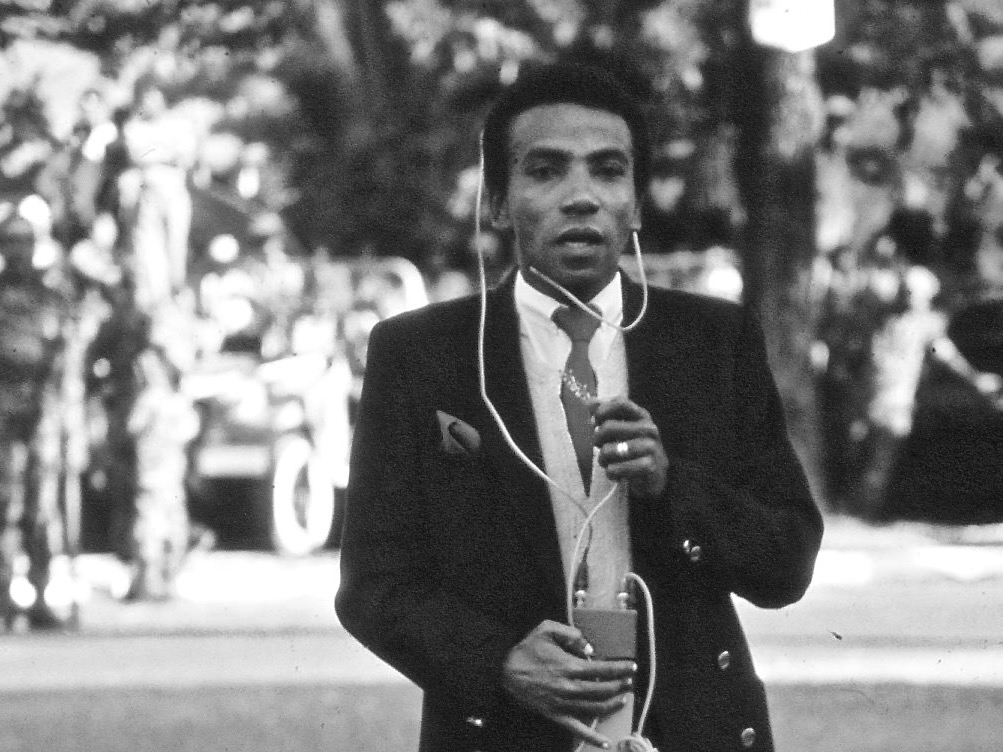 Ben Abdou, un des journalistes vedettes de la radio nationale, lors d’une fête de l’indépendance en 1986. Image extraite de l’ouvrage (© Ahmed Mze Bacar). Touma Bakary, la voix féminine de Radio Comores. Une couverture du journal Al-Watwan.