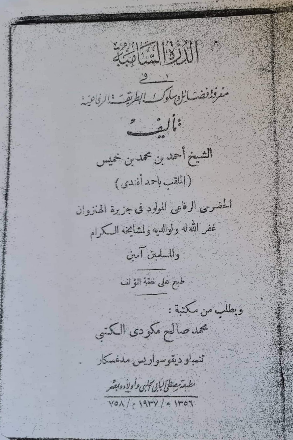 [15] Celui-ci a reçu l’ijâza de la part de shaykh Abdulhad bin Shaykh Ahmad Fundi. Avant qu’il ne soit dans la confrérie rifa’iyyah il était affilié à la shadhiliyyah.