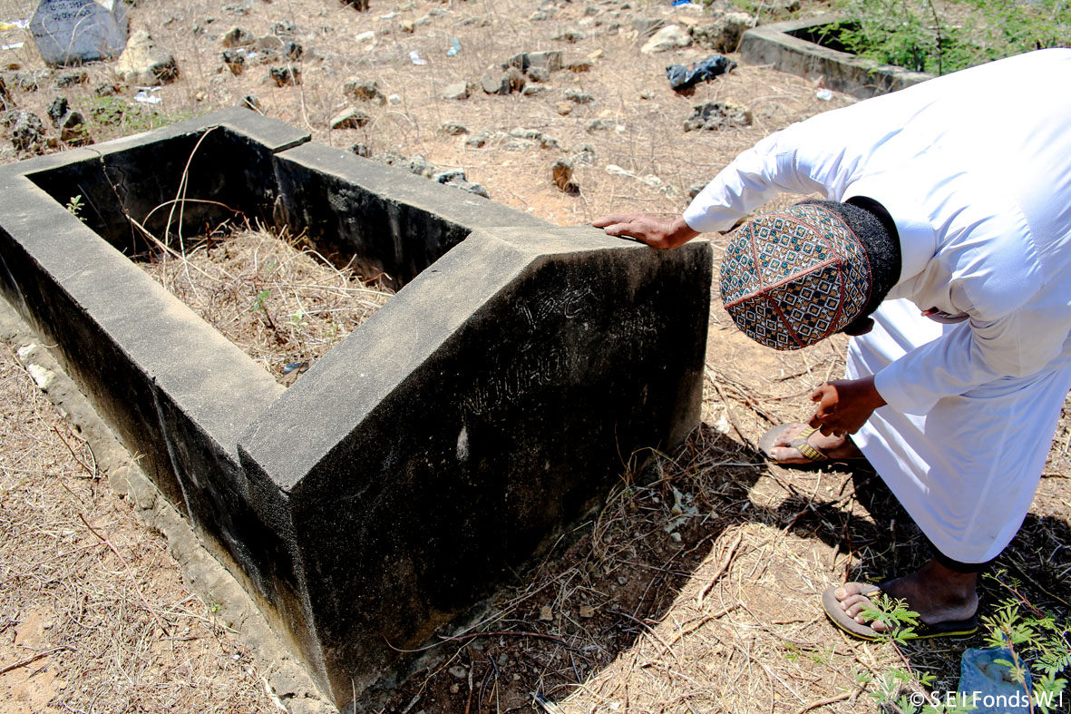L’entrée à Majunga du cimetière Sheikh Ahmed Vita, où sont enterrés les morts du Samson. Une des tombes portant le nom (Zalihata Mohamed Youssouf) et la date du naufrage (07.03.04). Fundi Hadji Toiouilu – notre guide en ces lieux – est l’un des derniers « gardien de la trace » au sein de la communauté comorienne de Majunga.