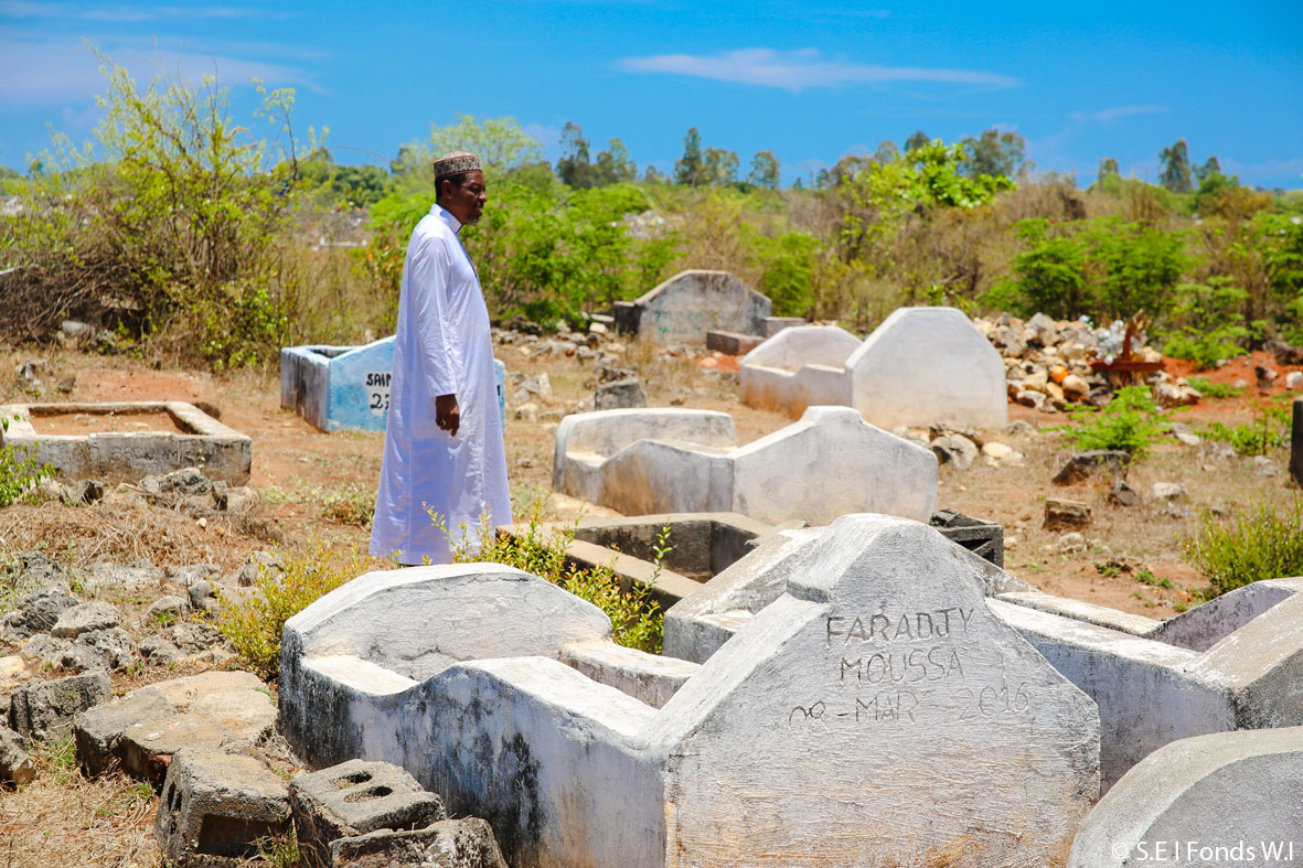 Il revient d’un périple soufi en Jordanie. Ancien élève de fundi Mohamed Combo (plus connu sous le nom de Cepe) à Fiofio, il a tout naturellement pris sa place dans la confrérie shadhuliyya el yashrutiyya. En nous, il reconnaît des visages amis. L’habitude de côtoyer les altérités, sans doute. Il se livre, déroule sa parole, posée mais sans concession. Il évoque les victimes de 1976. Les batailles menées auprès des autorités, pour ne pas les noyer dans le silence, pour leur accorder une digne place dans les cimetières de la ville. Un sacerdoce, s’il en est. Les Comoriens n’ont pas l’habitude de porter leurs morts au loin – une coutume locale – pour les rendre aux mânes. Ils ne les ressortent jamais de la tombe à la manière des cérémonies de retournements. Ils se contentent de les enterrer tout près de leur lieu de résidence. Un geste inhabituel pour le « Malgache », qui les considère comme étrangers à sa réalité. Ils ont beau vivre là – les généalogies remontent parfois jusqu’au temps des razzias – depuis des lustres, les gens les pointent du doigt.