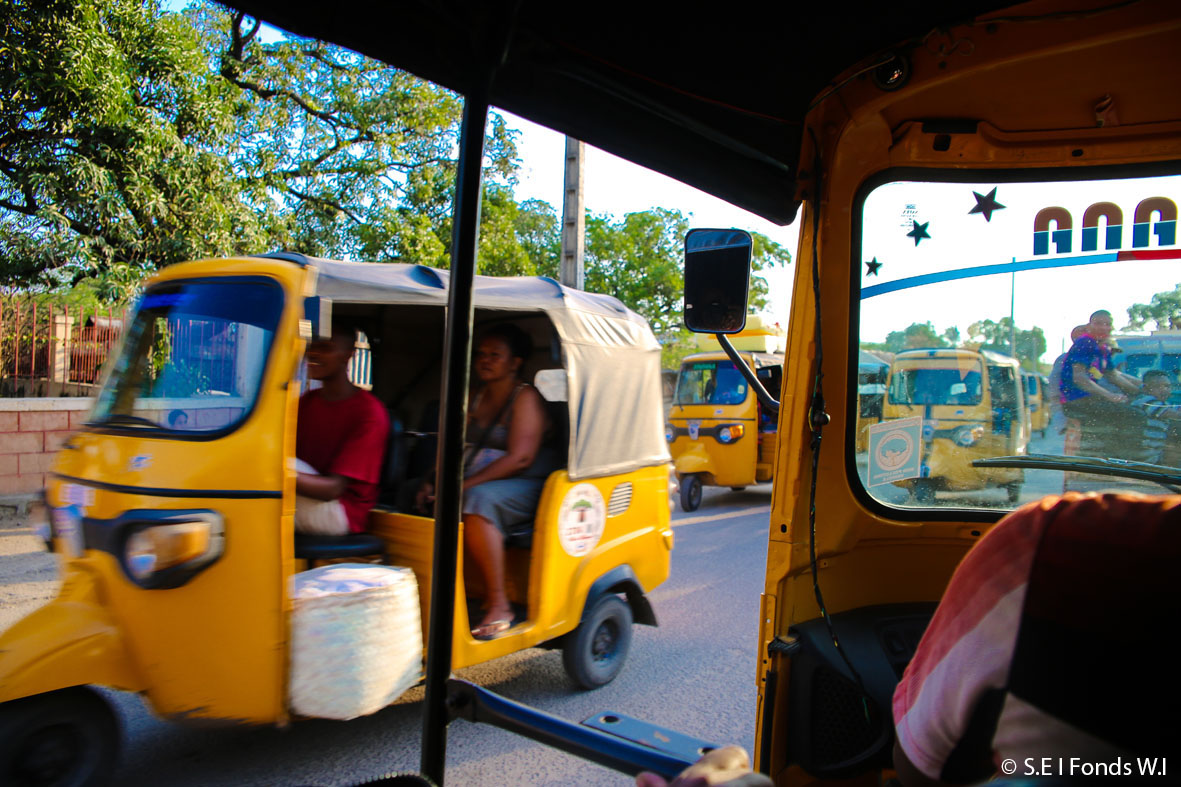 Les tuktuk de Majunga remplacent la plupart du temps les pousse-pousse. La tombe de Rakotoarivony Gilbert à Bebe Magalosy.
