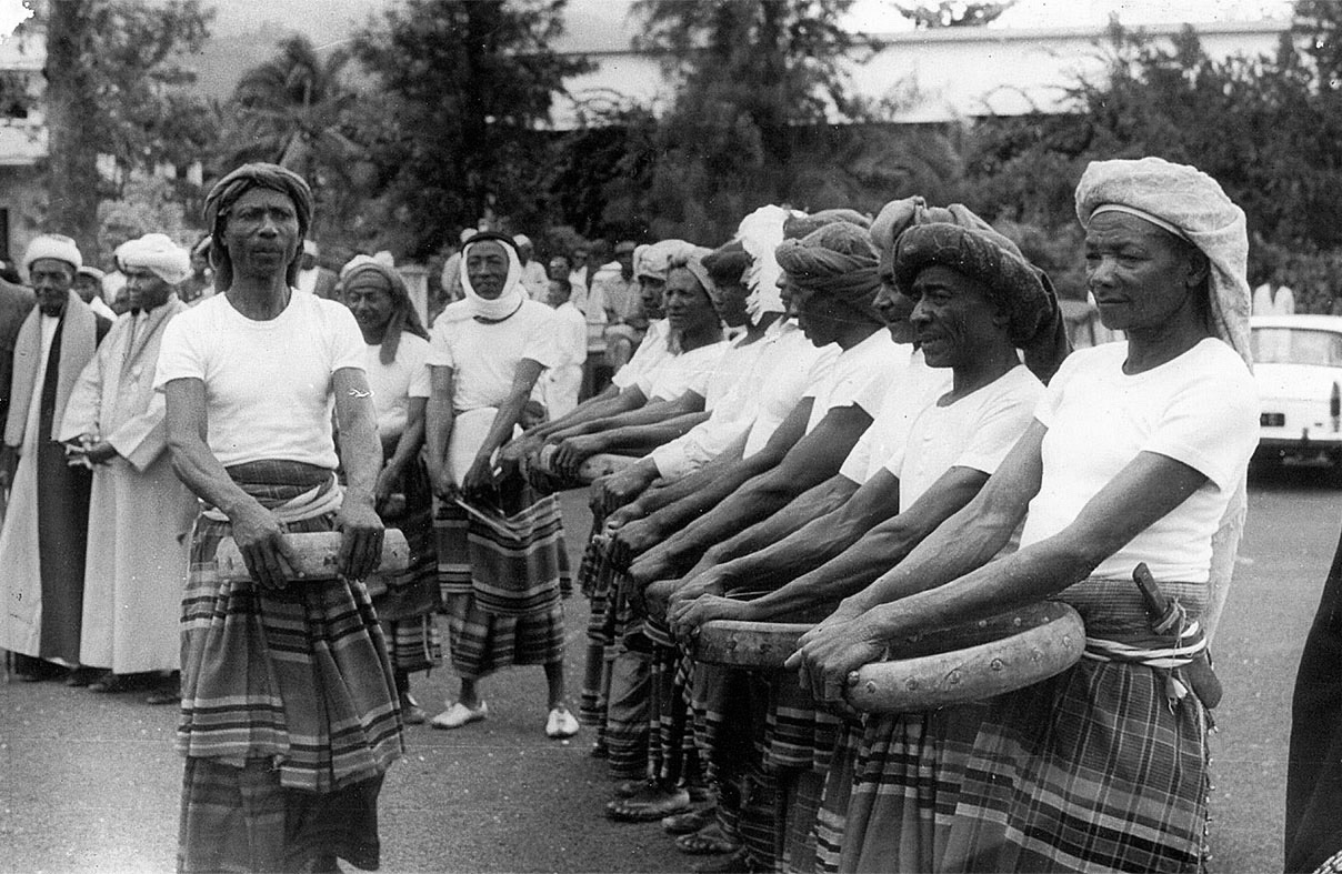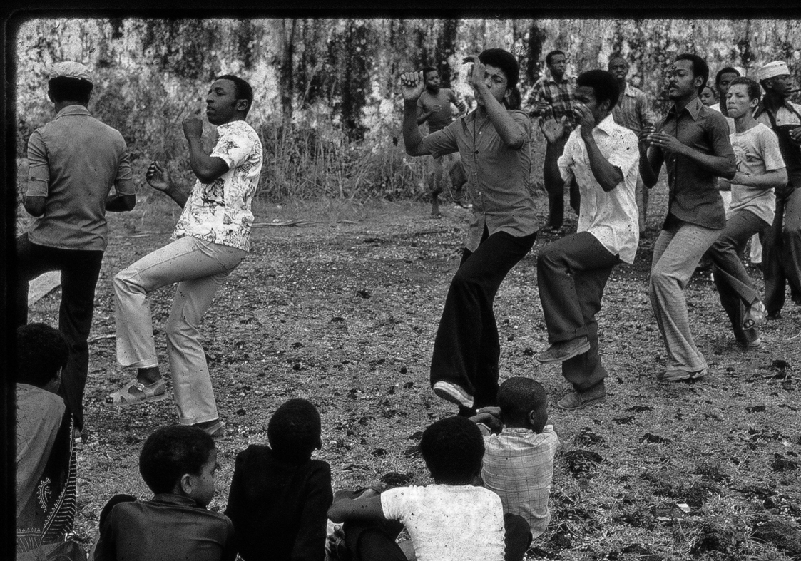 Au temps du mouvement culturel, des associations culturelles, des orchestres. Ici des militants du msomo wa nyumeni en train de répéter, un groupe de danse traditionnelle le jour de l’arrivée de Mitterand aux Comores, des membres d’Aouladil Comores à Moroni. Un temps qui n’était pas encore celui de l’artiste…