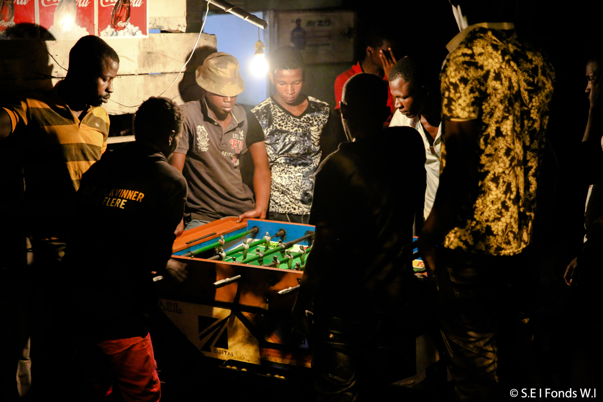Ribatu, Asgaraly… La route qui relie le stade au rond-point de Caltex est devenue le centre névralgique d’un certain Moroni, le Moroni qui s’endort tard, où les gamins désoeuvrés trouvent à s’occuper autour des baby-foot et dans les cabanes surchauffées autour d’un film indien ou porno, où l’épicier crée un attroupement par le seul fait d’allumer sa télé, où des hommes des quartiers « comme il faut » se réfugient auprès de jeunes filles en quête d’argent pour leur loyer, leur écolage ou leur téléphone… « On vient boire ici parce qu’on peut se cacher, à l’abri des regards et du poids de la société », confie le client d’un obscur débit d’alcool, en s’éloignant dans les ruelles tortueuses, éclairées seulement par les lampes furtives des passants. « Les gens viennent se saouler ici et réveillent nos mères en tapant sur les maisons », se plaignent d’ailleurs des jeunes de Madjadju.