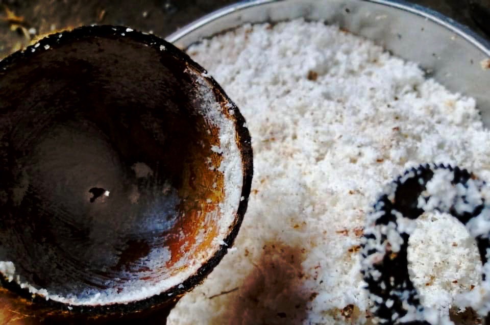 Un plat de fenenetsi, à base de riz et de coco. Deuxième photo: coco râpé. Les images illustrant cet article sont empruntées au profil FB de Sania Tourqui/ Kheir DDawedjou (Eekudja Delices/ la cuisine comorienne et d’ailleurs), une des spécialistes connues sur le réseau de la bonne cuisine moronienne d’antan…