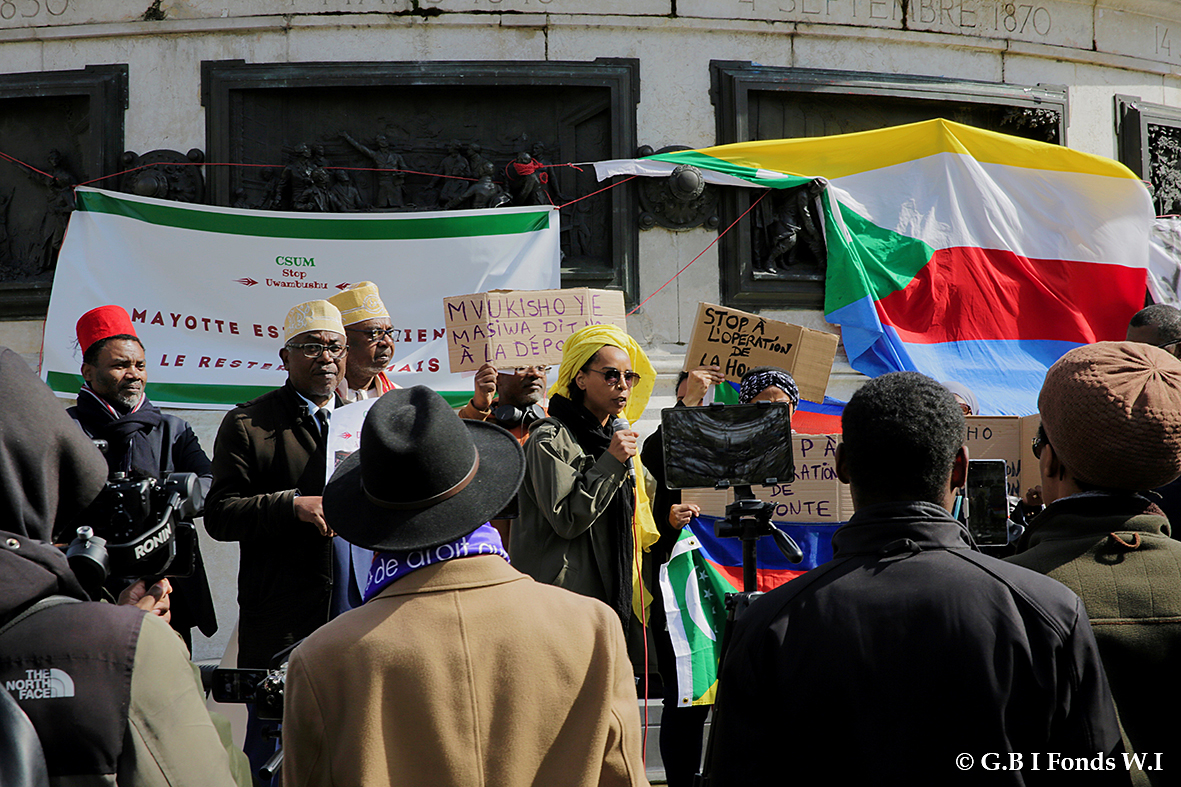 Lors de la manifestation contre l’opération Wuambushu sur la place de la République à Paris.
