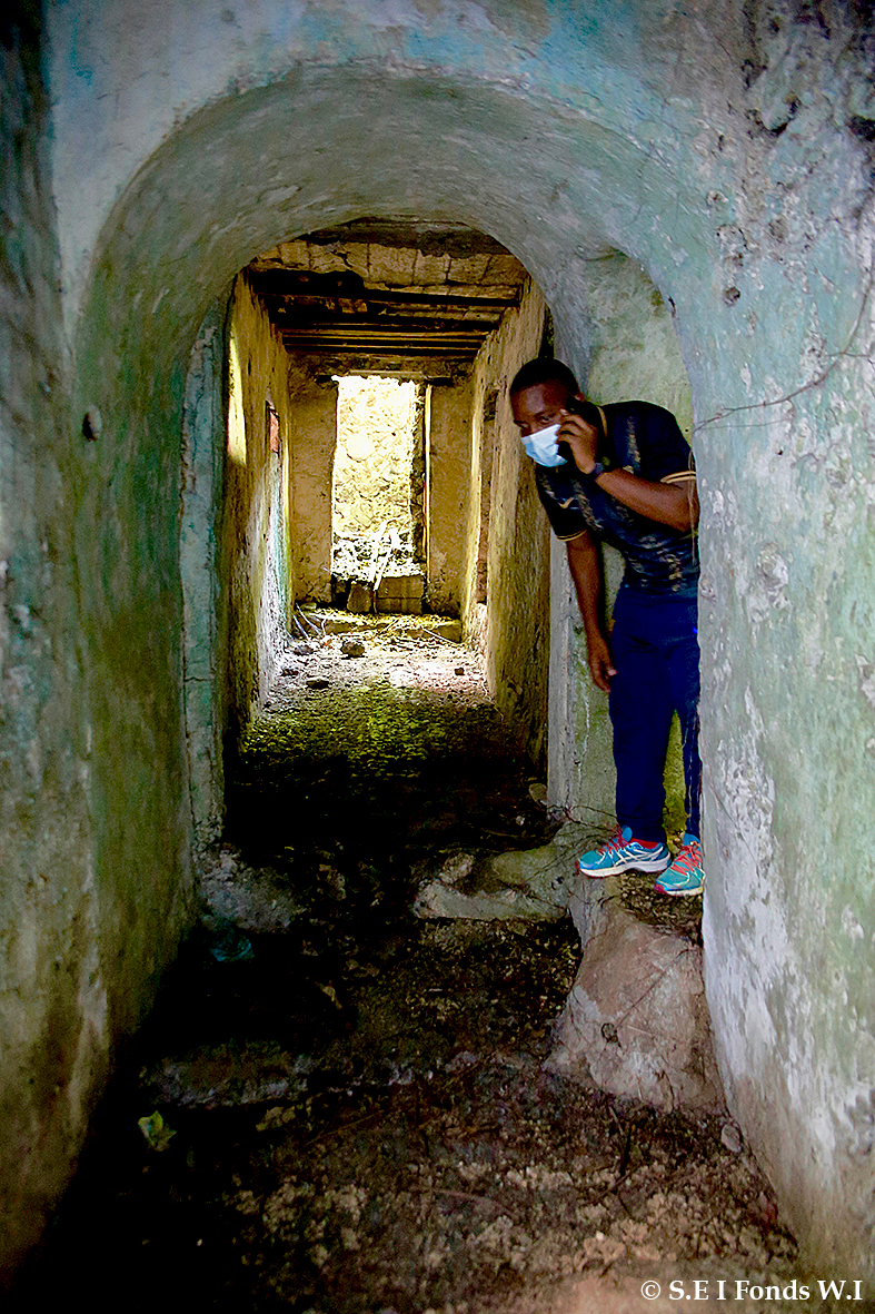 Un lieu surtout « habité », au sens plein du terme. Il nous parle ainsi du fou, qui vient régulièrement s’endormir sous les odeurs de l’encens, dans ce qui fut la chambre du petit Al-Habib. Les morts ne sont jamais morts chantait Diop. Ils se cachent dans l’arbre qui serpente dans la cour, à travers ces murs qui nous entourent. Housni, lui, nous fait entrer plus à l’intérieur, d’un pas léger. Un corridor, des galeries au visage assombri, des marches vers l’étage au-dessus, des niches creusées à même les murs, des ouvertures pour laisser passer la lumière, ainsi que l’air frais, un petit patio gagné par les ronces. L’architecture attise notre curiosité, mais on devine le jeu qui a pu s’établir entre le dehors et le dedans, en tenant compte de l’intimité et de la sociabilité des familles. Il n’y a pas si longtemps, les femmes résidant dans ce type de demeure se fiaient à la seule tradition du bwibwiyi pour éviter les regards trop appuyés dans les rues. On ne peut qu’apprécier les ouvertures, qui leur permettaient de voir sans être vu.