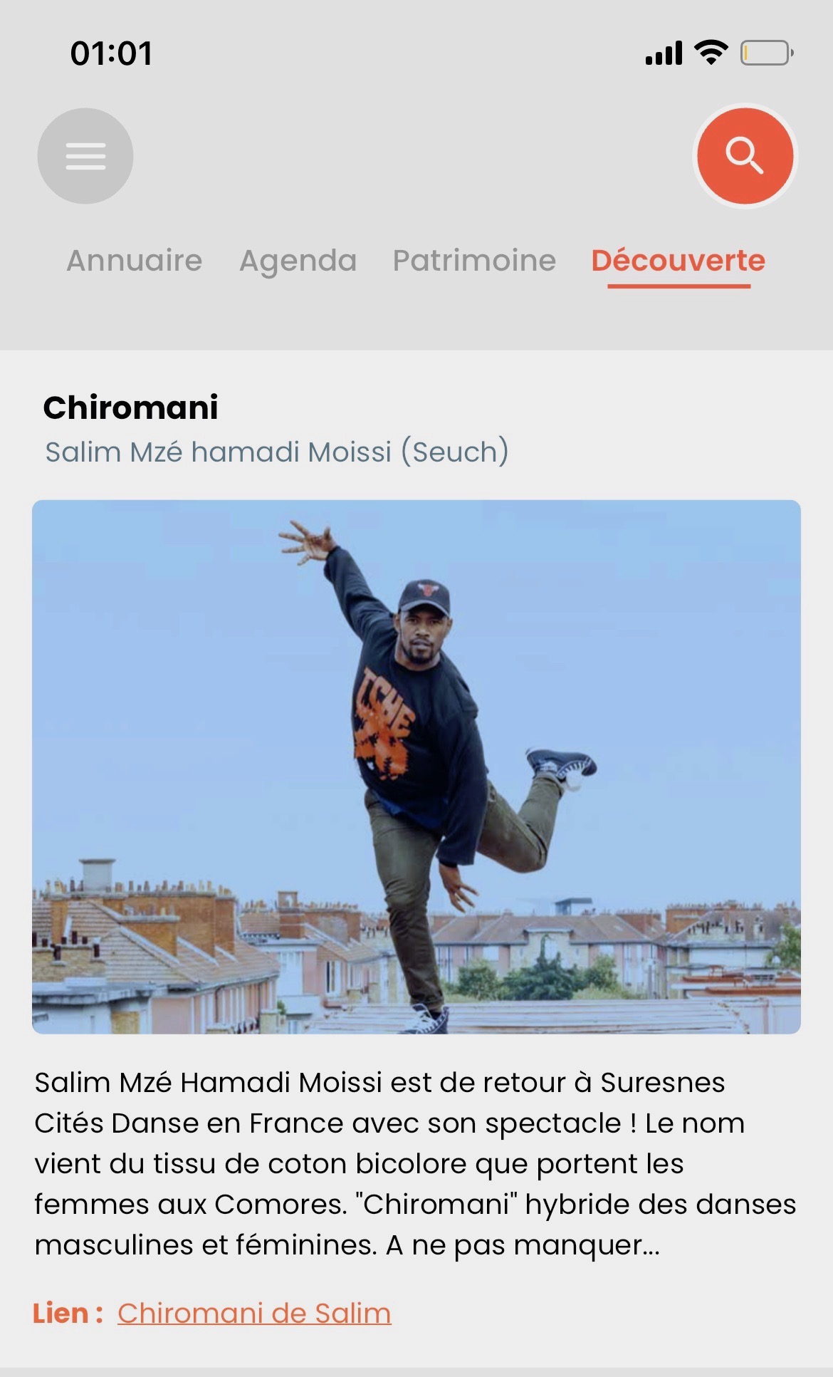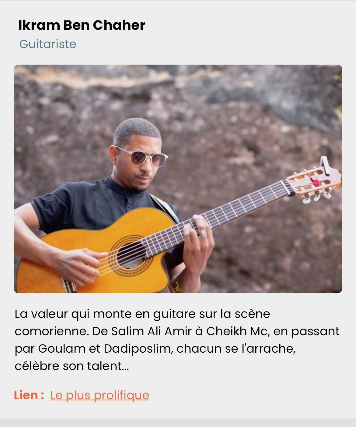 « Pour l’instant, on travaille à interpeller l’alentour, pour que les gens saisissent l’intérêt de l’outil en lui-même. Plus tard, on pourra affiner. Il était temps que l’on retrouve le meilleur de la culture comorienne sous le même toit ». Deux onglets supplémentaires sont à remarquer, au-delà de l’annuaire et de l’agenda. On l’a évoqué plus haut. Le premier est dédié au « patrimoine ». Des images, se rapportant aux sites historiques à visiter, s’y trouvent rassemblées, avec les contacts notamment d’associatifs ou de professionnels pouvant accompagner le visiteur intéressé. On y trouve le palais Ujumbe de Mutsamudu ou la maison d’Al Habib à Itsandra. Un élément que les touristes sauront apprécier, voire l’office du tourisme. Un onglet « découverte » s’occupe ensuite de donner de la visibilité aux propositions émergeantes ou consacrées du moment. Quatre propositions par mois sont pour l’instant prévues.