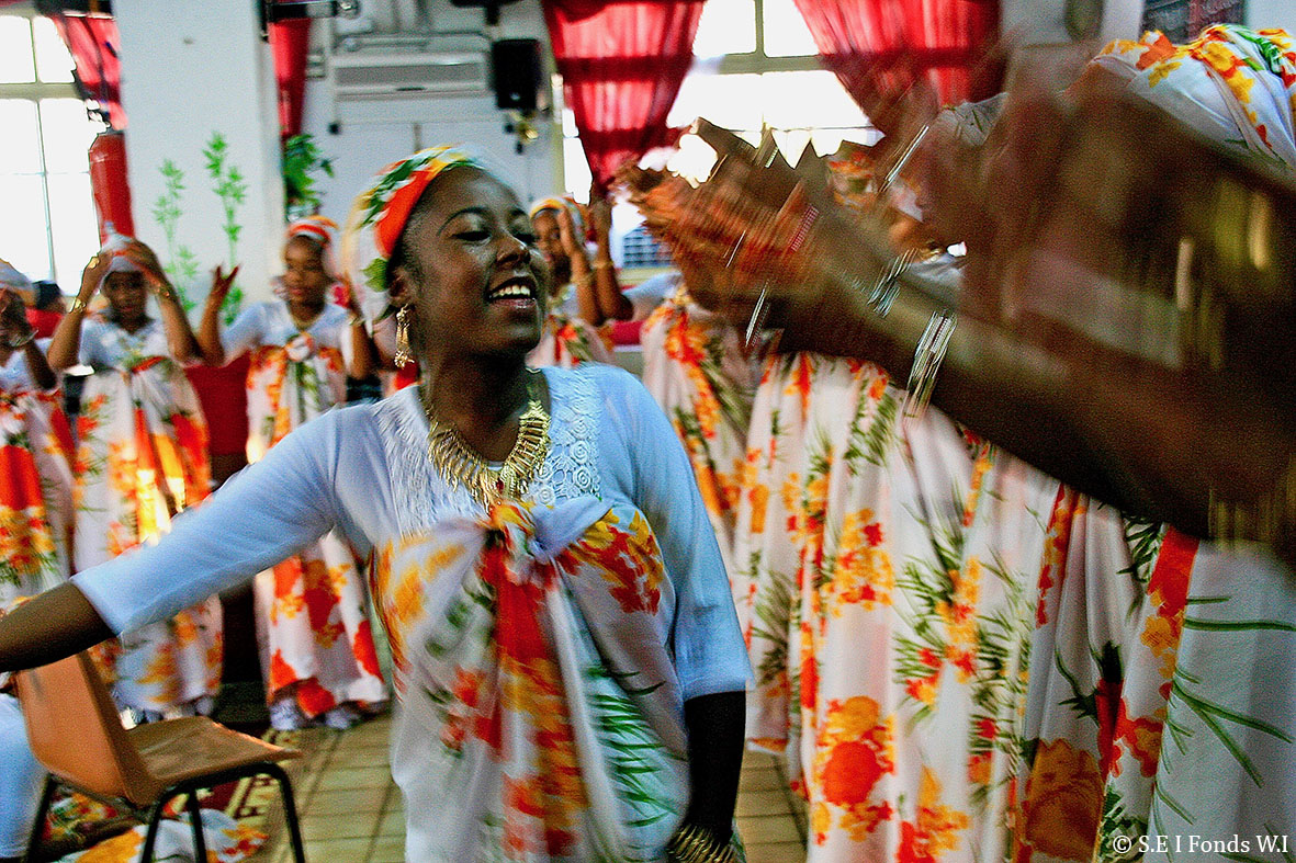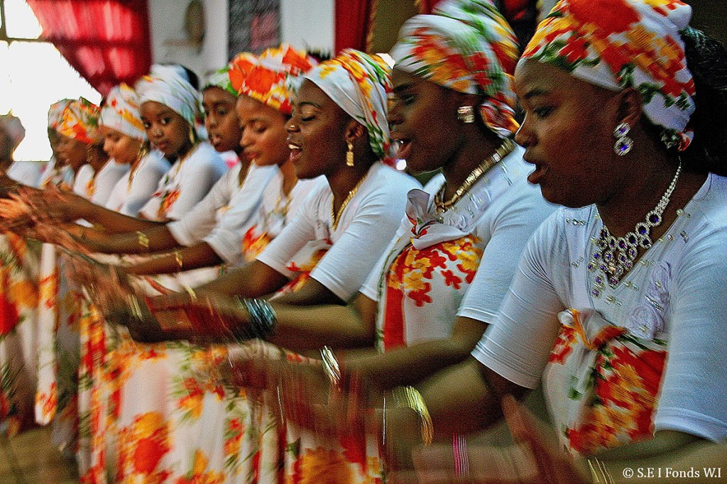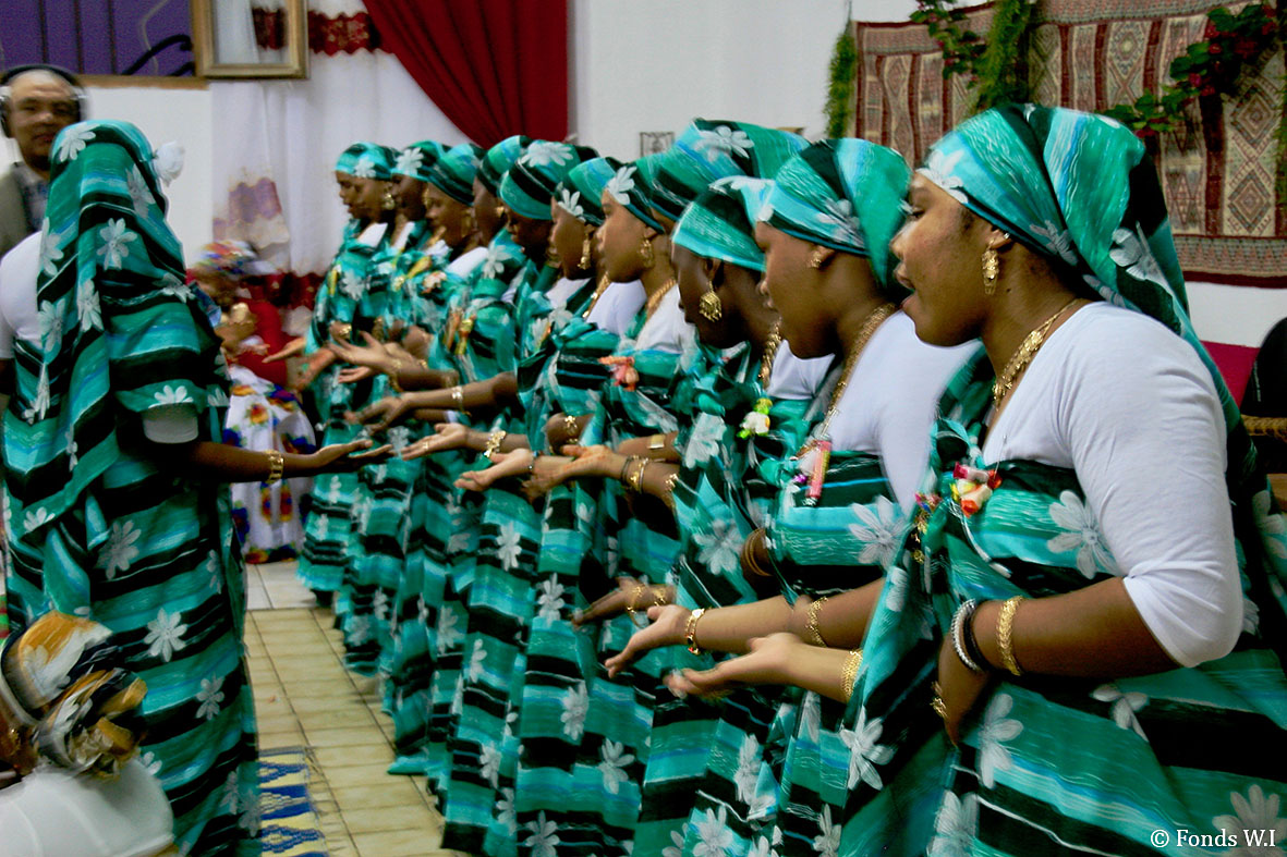 Sans doute que les politiques, là non plus, n’ont pas assez réfléchi à cette image incarnat les possibles du legs. Ces femmes, qui, d’un geste, arrivent à mobiliser les saints et le prophète dans une seule et même dramaturgie. « Disposées en ligne, elles exécutent à l’unisson une chorégraphie lente et élaborée qui mobilise principalement les bras et le buste et met particulièrement en valeur es qualités les plus appréciées de la féminité mahoraise, la beauté, la discrétion, la maîtrise, ainsi que leur adab, savoir-vivre, et leur ustaarabu, raffinement »[1]. Un chant a cappela de forme « responsoriale » – soliste et chœur – les accompagne. Tari et kasha-kasha en rythme : l’imam-meneuse est là pour tenir les rangs.