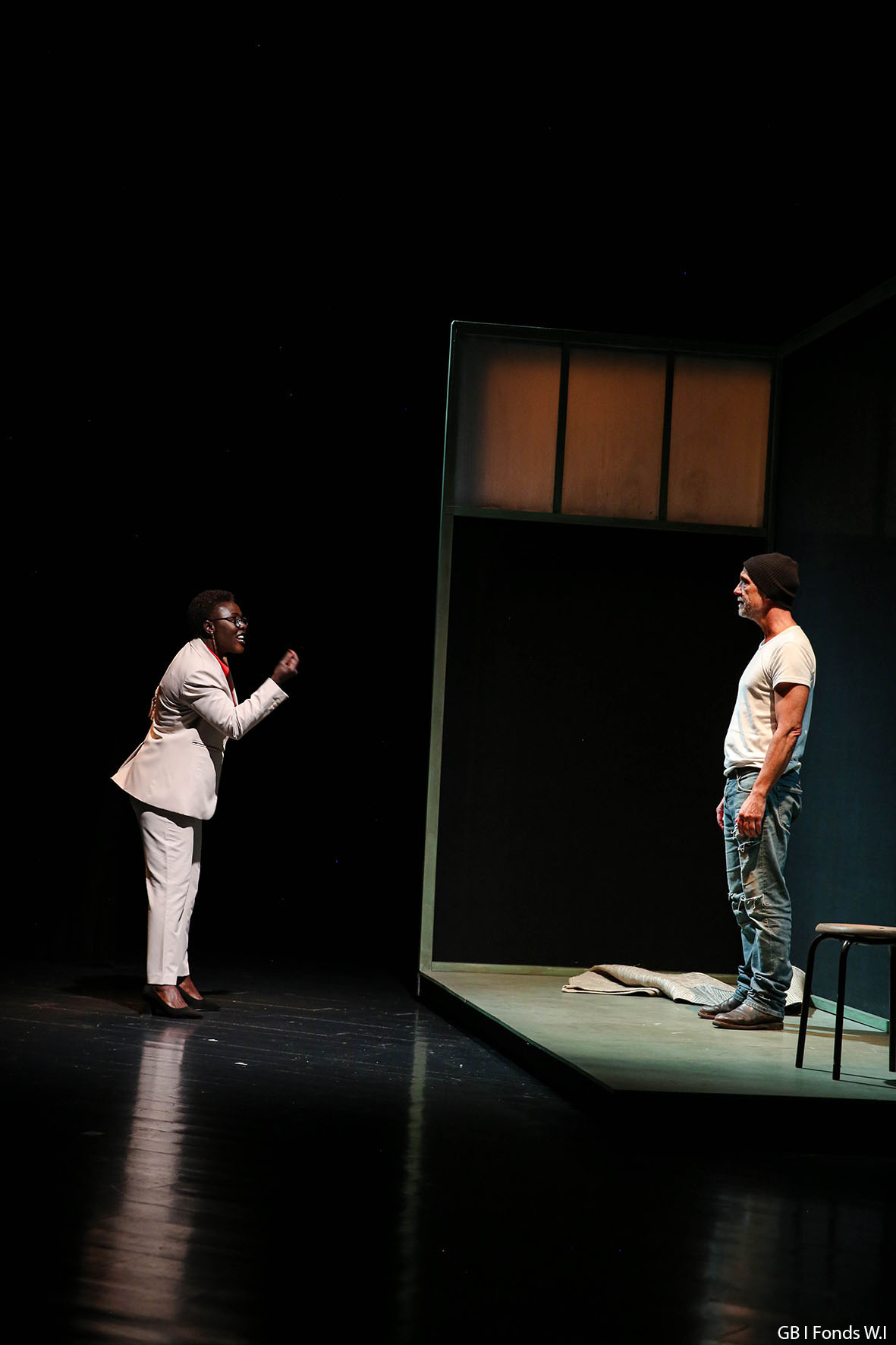 Le personnage de Djamila Disco parle dans un français qui détonne, en rapport avec ses origines continentales. La langue du commissaire Tshapa paraît soignée, à l’instar des anciens subalternes de la puissance impériale. Celle de l’inspecteur Odra (Dédé Duguet) est aussi empesée que l’histoire de son père disparu dans la guerre d’Algérie. Nkaro parle un français troublé, qui se négocie dans le shinduwantsi, cette poétique comorienne née du silence, alors que Marie-Madeleine, campée par Diariétou Keita, déjà aperçue chez Dieudonné Niangouna, se veut cinglante et très peu diplomatique. Et dans le geste et dans les mots ! Leurs imaginaires à chacun sont eux-mêmes très emmêlés. Toujours à la croisée des mondes : on est aux Comores ou on ne l’est pas ! Y compris jusqu’à cet usage de la parole de Dieu, emprunté, sans mode d’emploi, à une culture se réclamant de l’islam. Une spectatrice, s’adressant à l’auteur, lors d’un « bord plateau » : « Je viens des Comores et vous avez raison de dire que votre pièce n’y serait pas bien accueillie. Vous tapez sur tout le monde ! Ce que vous racontez de la religion, par exemple, ne peut que déranger là-bas, sans parler de la manière dont vous brocardez le pouvoir ou les Comoriens eux-mêmes ».
