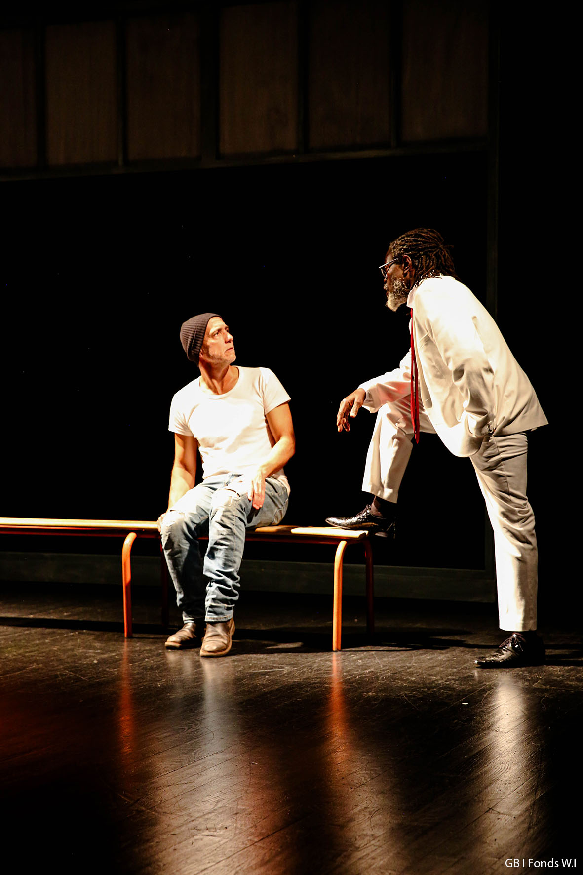 À l’origine, il y a un maître d’œuvre dans le game, qui embarque son monde. Mais l’histoire est volontiers emmêlée selon Soeuf Elbadawi (qui joue Nkaro), à la fois auteur et metteur en scène : « Ainsi se nourrissent les embrouilles coloniales chez moi. Nous avons passé le cap de la victime qui chouine. Je joue dans cette pièce sur une forme d’opacité, car tant de choses qui n’ont pas été dites, ne peuvent se donner à voir, sans effort. Alors, oui, je risque de perdre certains spectateurs, rapport au narratif déjà établi. Mais c’est pour ça que le récit se doit de rester vif pour que les spectateurs comprennent à la fin que le seul risque pris est de se noyer dans la fameuse piscine, qu’évoque Gaucel. Car pour nager, il faut avoir appris à le faire. Pour comprendre cette histoire, pareil, il faut avoir potassé les fondamentaux, et ça ne fait pas toujours plaisir de se l’entendre dire, surtout lorsqu’on est soi-même pris dans le temps béni des colonies. Je reconnais qu’il y a beaucoup d’ellipses dans mon histoire. Mais je ne doute pas que le spectateur a le moyen de remettre les bons éléments au bon endroit, avec un peu d’efforts ».