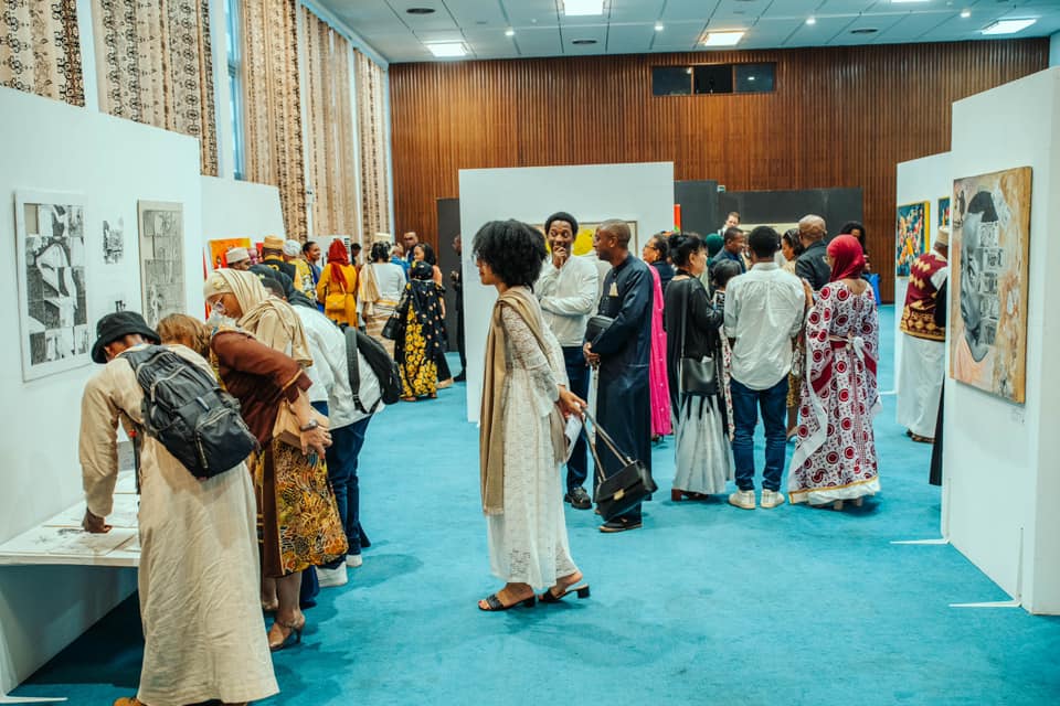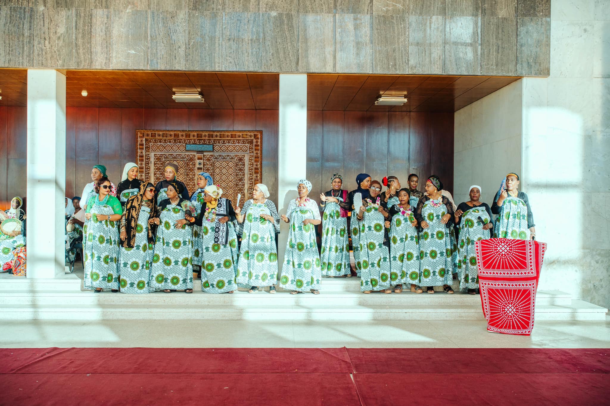 L’affiche du film de Hachimiya Ahamada. La salle d’exposition du Palais du peuple et le public. Une troupe de danse traditionnelles à l’entrée. Le public à l’inauguration du festival.