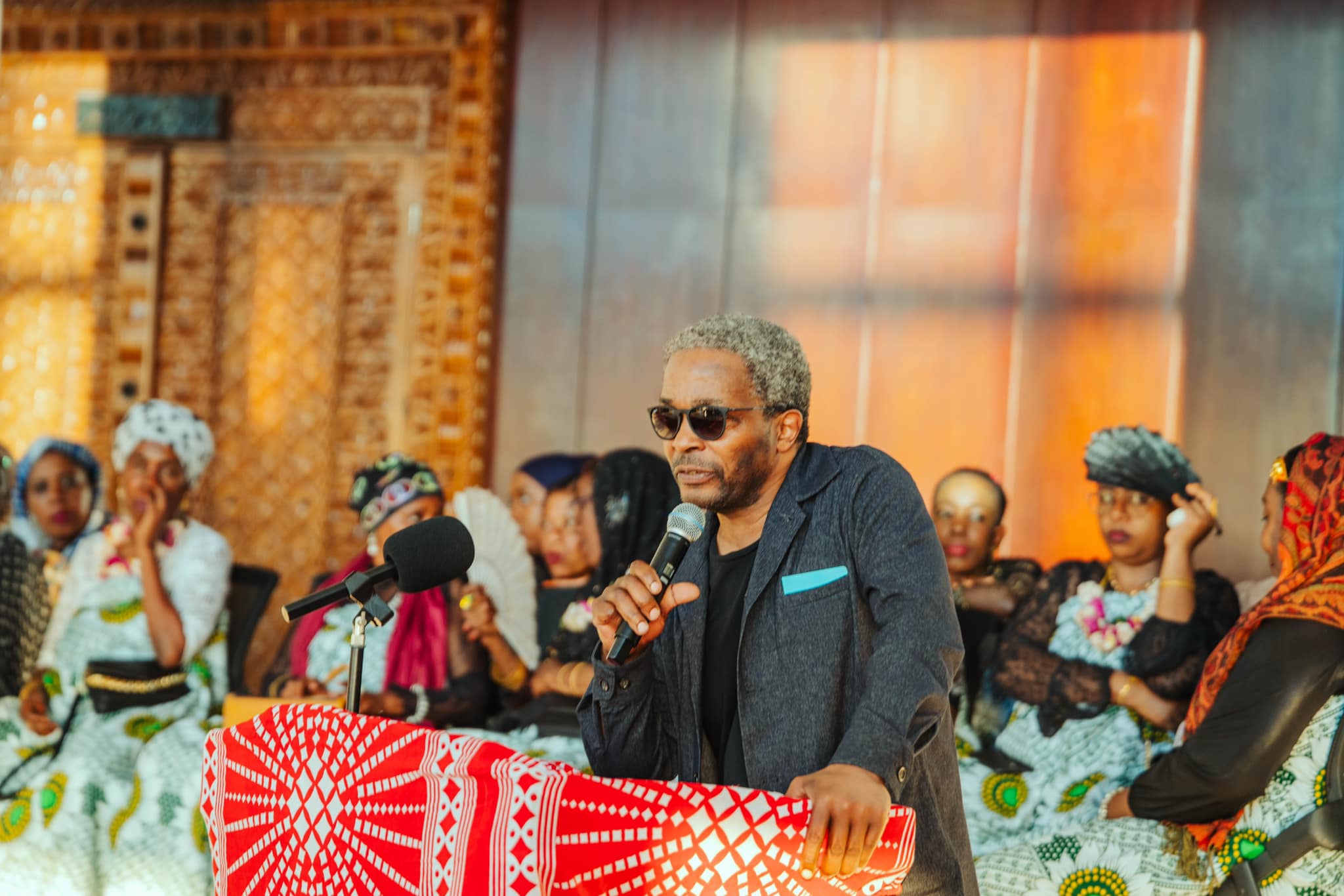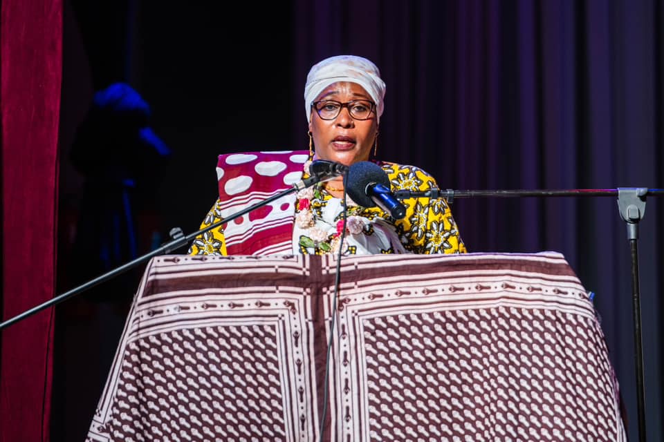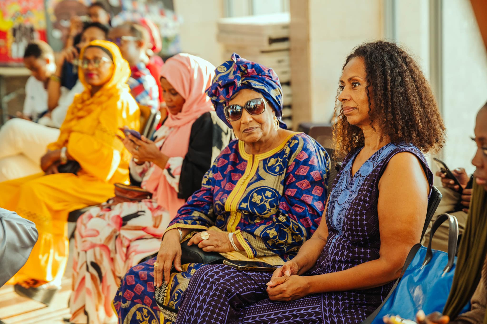 Mme Fatima Ousseini, présidente du festival, et Mr Belou, chargé de la défense, Simon Njami, critique d’art et président du jury Ndeye Marie Fall, venue rendre à Ahamdou Matar Mbow, et Lydie Diakhate, venue pour le cinéma.