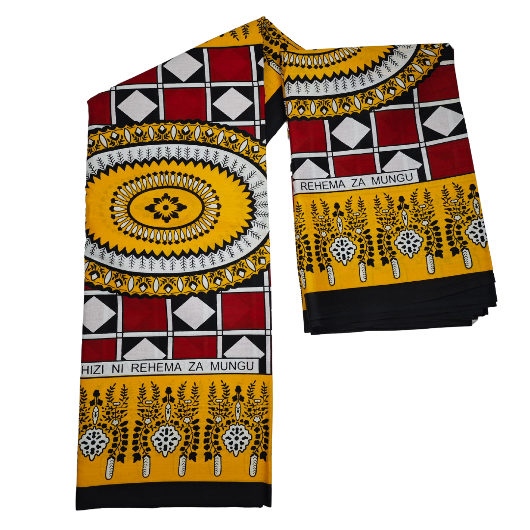 « Le nyambawani des femmes mahoraises est un tissu aux couleurs vives, aux motifs infinis, portant des inscriptions en caractères latins. Un choix surprenant pour des femmes qui sont presque toutes initiées dès la petite enfance à l’écriture arabe par l’école coranique, mais restent en majorité analphabètes pour ce qui est de l’écriture latine. Le nyambawani est porté par-dessus un tricot ou un chemisier, noué au-dessus de la poitrine ou à la taille : c’est le saluva ou pagne. Il se porte également sur l’épaule ou sur la tête en tant que châle ou kishali.