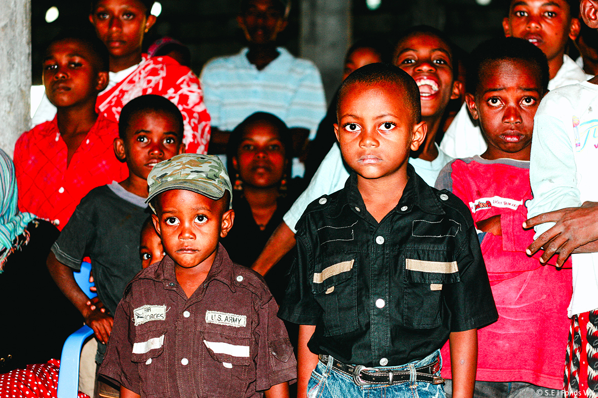 Le jeune public de Mirontsy tétanisé. Mounir, Jasmine et Sultan, en pleine représentation.