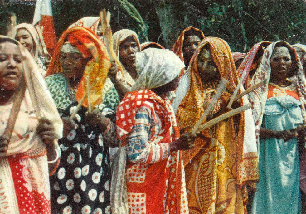 VOILE. « Le vêtement issu de l’islamisation est venu d’Afrique de l’est. Les femmes les plus nobles étaient complètement voilées, les moins nobles portaient leur voile attaché sous le menton… Le bwi-bwi s’est implanté surtout chez les femmes des côtes, comme à Bangwa où l’influence de l’Afrique de l’est est forte, mais aussi à Mitsamihuli, Fomboni, Washili, Mboitwemba… là où se trouvent les érudits. Les jeunes filles qui adoptent le voile noir préfèrent une version plus moderne que celle du bwi-bwi. »