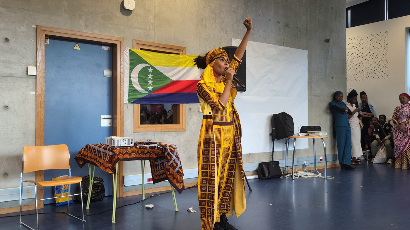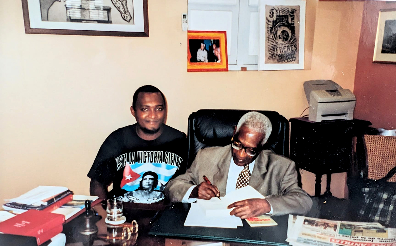 NED en plein travail à Saint-Denis en région parisienne, lors d’une rencontre littéraire. À Nanterre, lors d’une célébration de l’indépendance comorienne (Barwane, Zayonne). De l’autre côté du Périph. et avec Aimé Césaire, pour finir, dans son bureau à Fort de France.