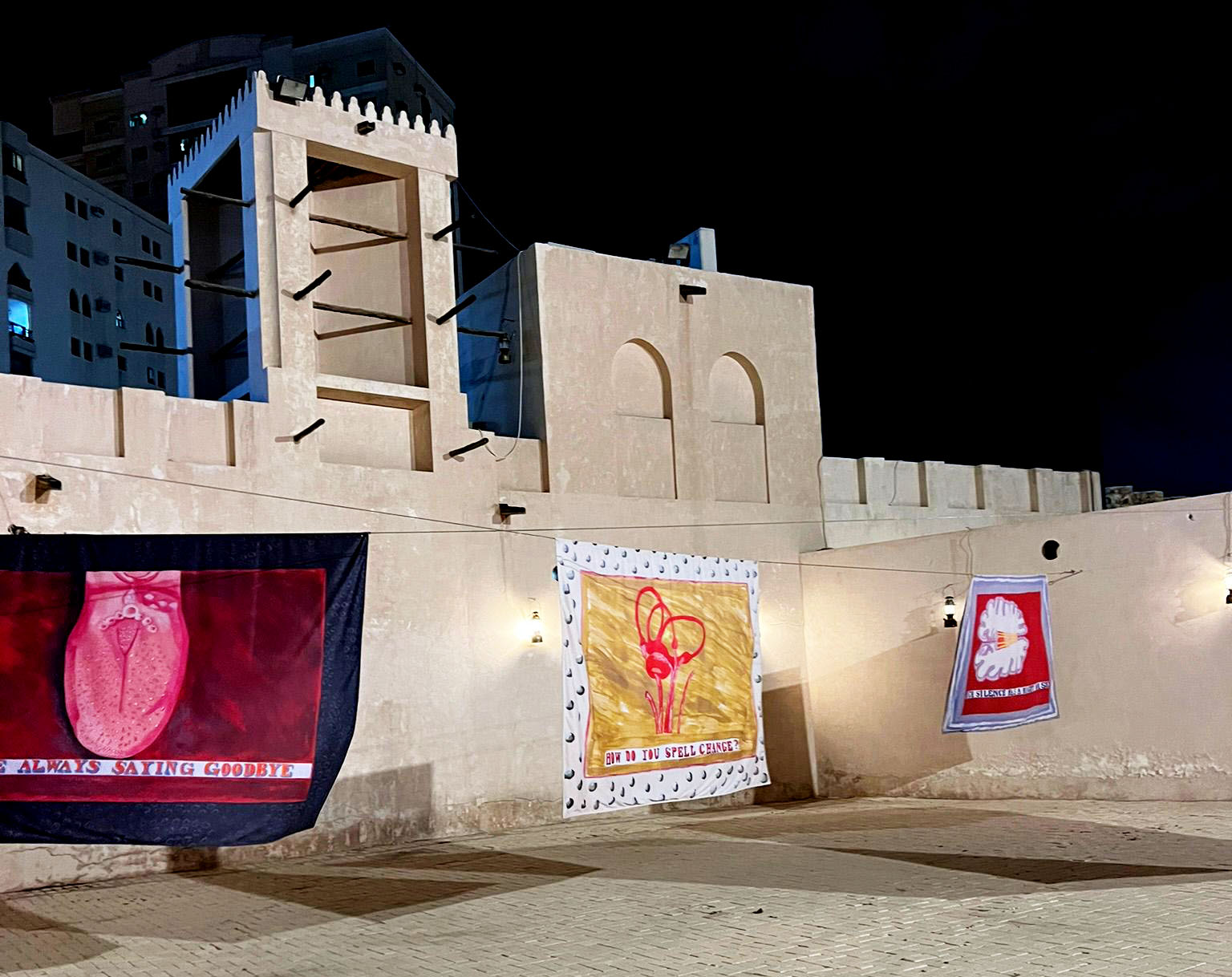 Images d’une exposition de Lubaina Himid à Shardjah (Kinaya Hassane).