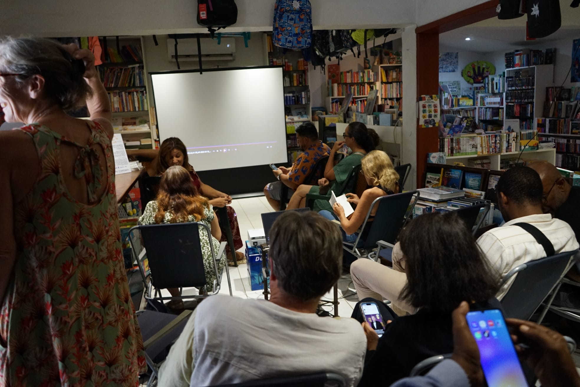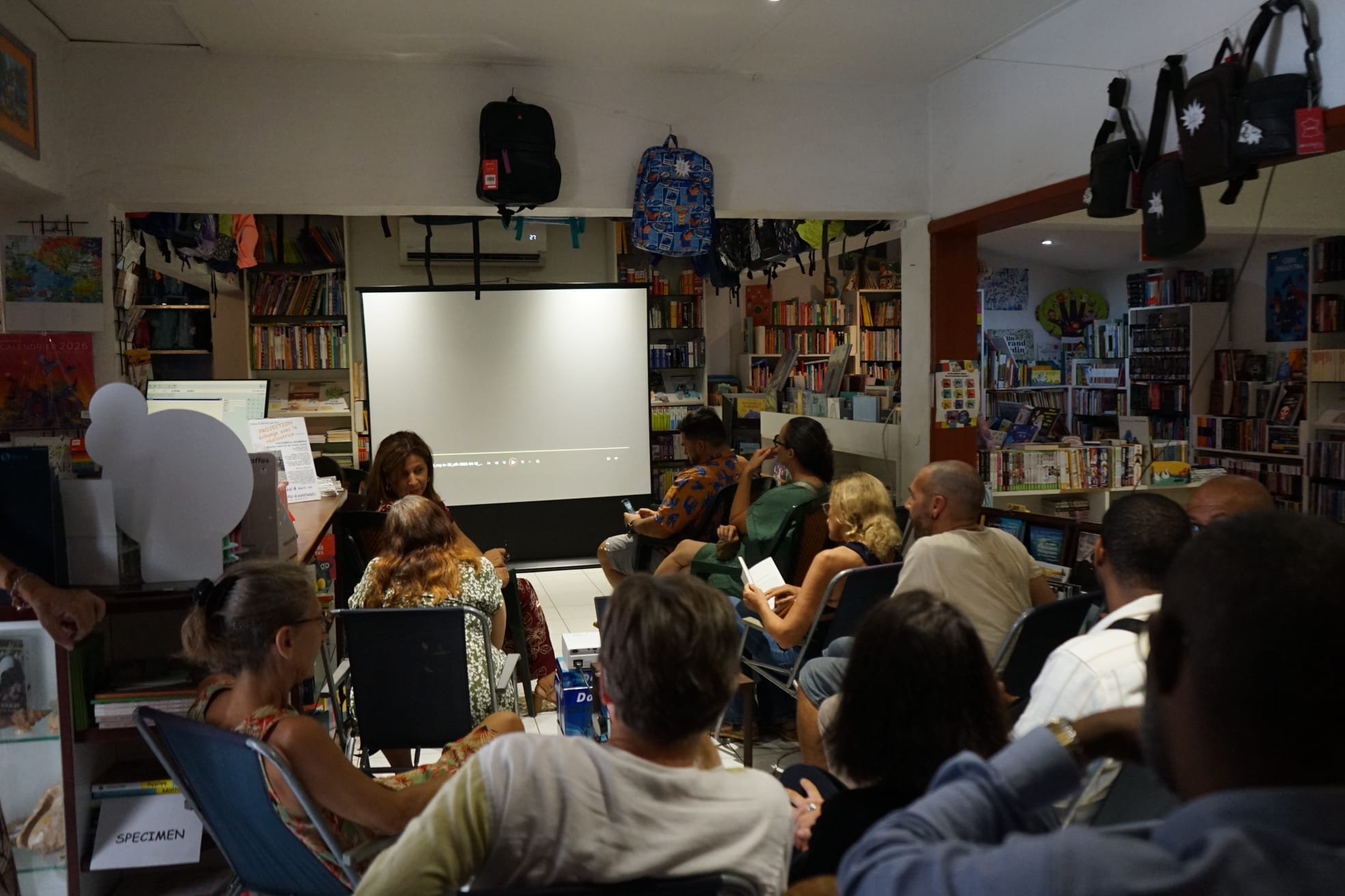 Lors de la projection à la Bouquinerie, à Passamainty.