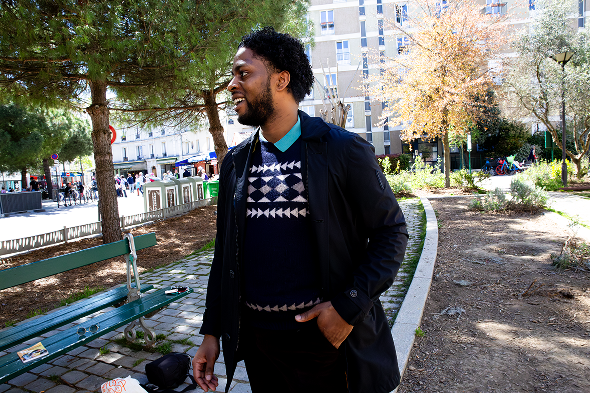 Mouradi se lie à la dame qui l’a accueilli sur le plateau : Mekaoui. Celle-ci l’appelle à chaque fois que se présente un rôle de figu. Entretemps, il mate un film – La cité Rose – qui parle de banlieue. « En fait, je n’avais pas l’habitude voir des comédiens noirs à l’époque ». Il se renseigne : « Comment le film a été monté ? Comment se fait-il qu’il ne dénigre pas ceux dont il parle ». Nous sommes en France. On en est encore à caricaturer la banlieue et ce projet lui donne une autre idée du métier. Il contacte l’un des coproducteurs, Sadia Diawara, dont il retient le nom sur le générique de fin. Via facebook, au culot. « Je lui parle de mon parcours, de mes parents qui m’ont envoyé au bled, de mon désir d’être avocat, de mon envie d’essayer le cinéma ». Diawara lui lui donne rendez-vous dans son antre – un centre d’animation du 19ème arrondissement de Paris – un soir d’hommage à Césaire.