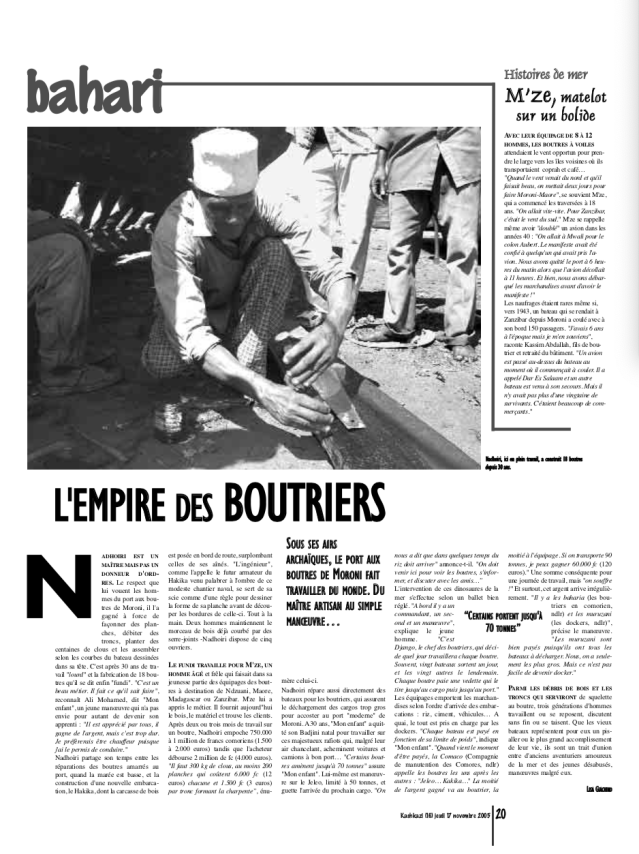 Aux Comores, toute activité donne lieu à des chansons. La pêche aussi. Chronique parue dans le n° 2 du journal Kashkazi en août 2005. La mélodie est saccadée comme emportée par le tourbillon des eaux. […]