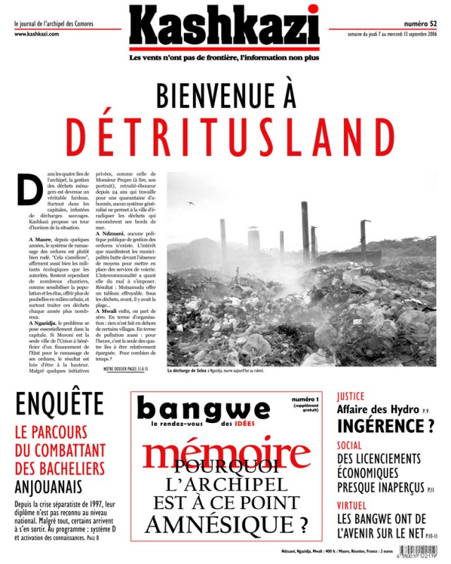 Certaines archives du journal Kashkazi sont désormais consultables sur notre site. Pour accéder au n° 59, cliquer ici. Au sommaire : mémoires et milliards, les cabines de la débrouille, la conférence des bailleurs de fonds […]